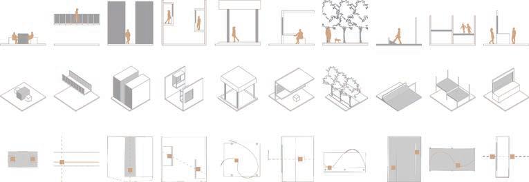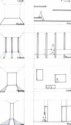以4種介面 縫 開口 柱列 平台置入不同面向