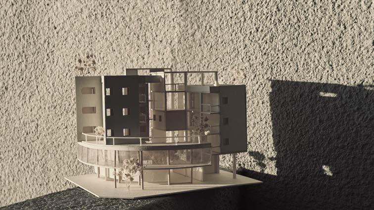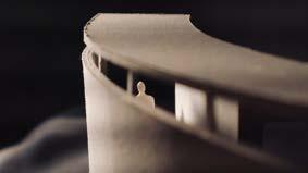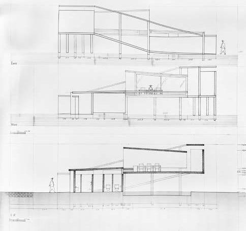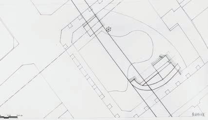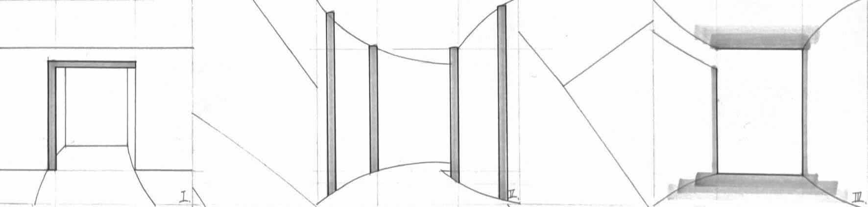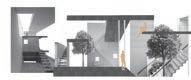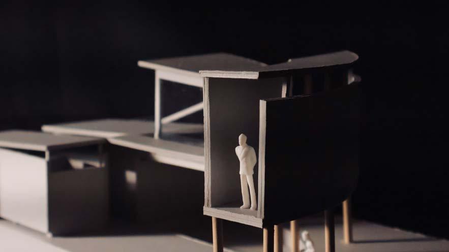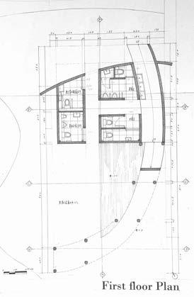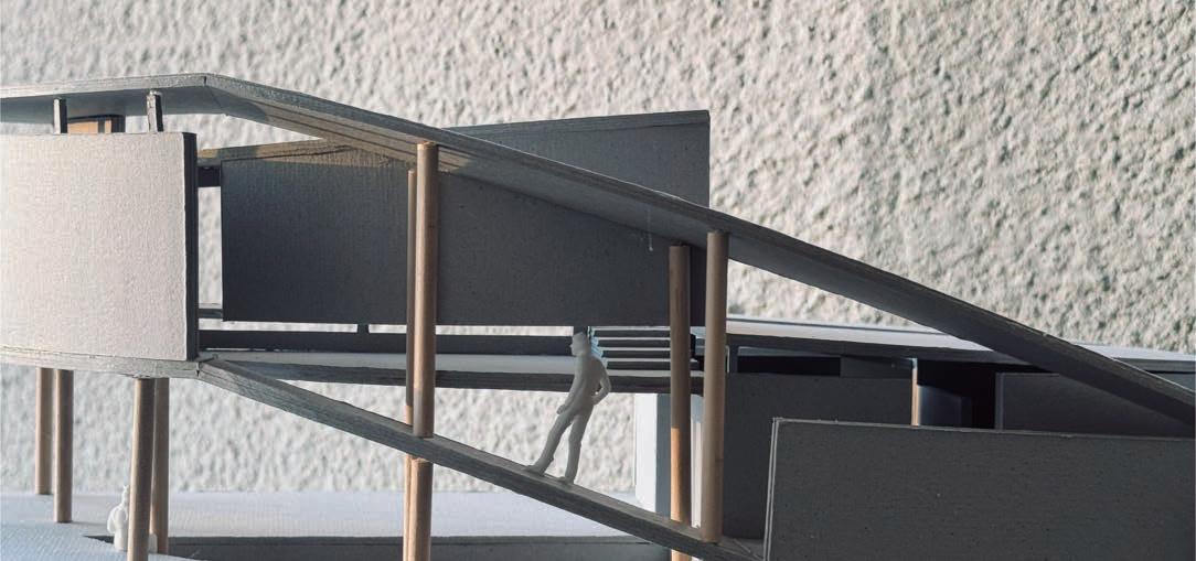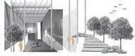 透過弧形 分割出前中後三庭, 分割對外開放及對內空間 配合柱列將人從外 緩慢過渡進內 穿梭其中使人停留