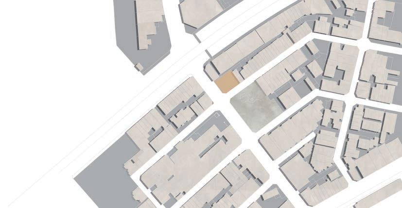 將一側量體以基地對話之連線擺放,夾出一後院和住宅共享景觀