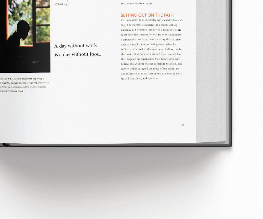 This project is picking up a poorly designed book to redesign for cover, spine, back, table of contents, chapter opener and including text and image spreads. The redesign is mainly targeted for young adult and adult who are interested in Buddhism, history of Buddha and meditation practices.