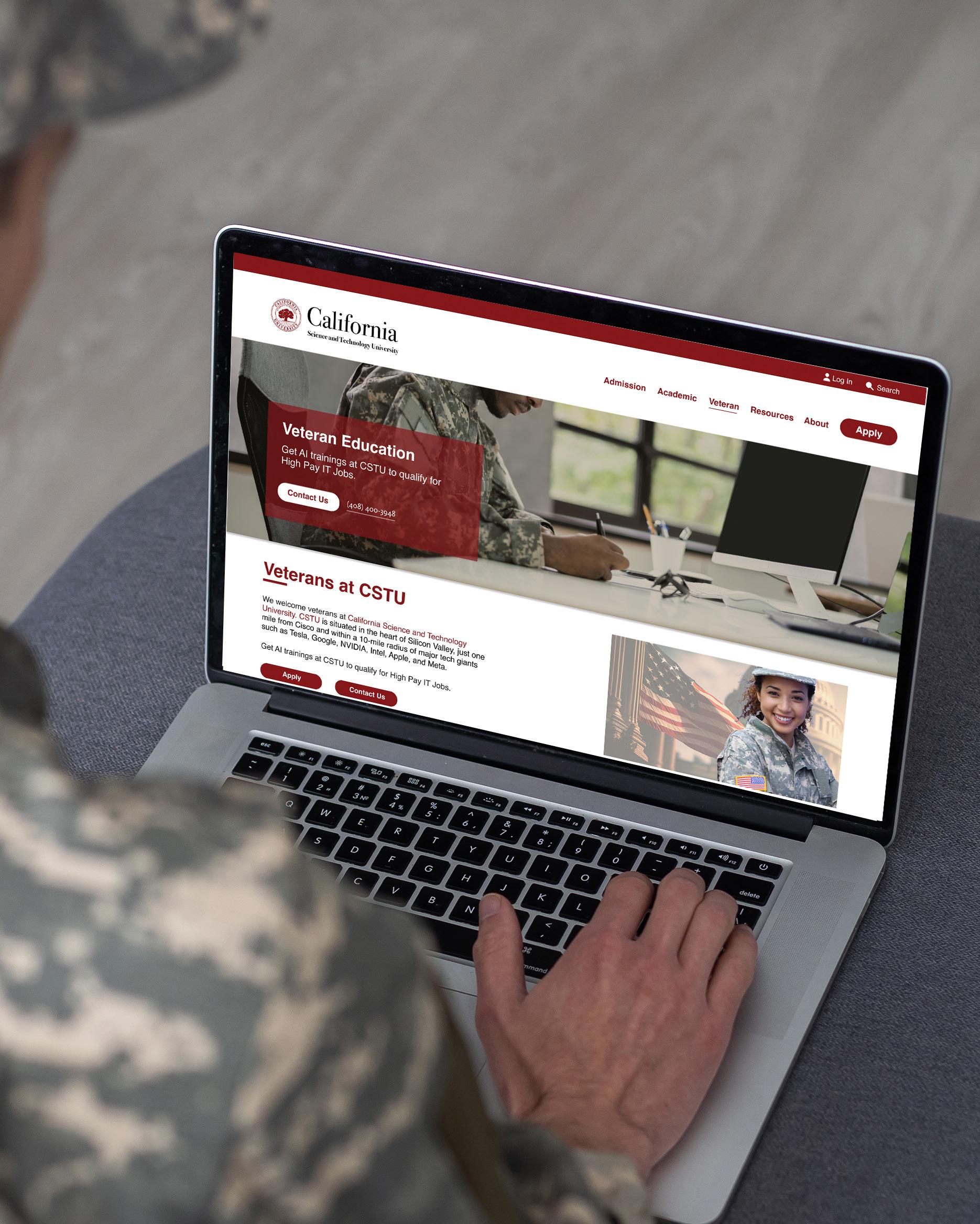 Developed an engaging and intuitive homepage design tailored specifically for veterans at California Science and Technology University. Access to educational services. This design incorporates interactive elements and personalized features, ensuring a seamless transition for veterans into the academic and technological realms of the university.