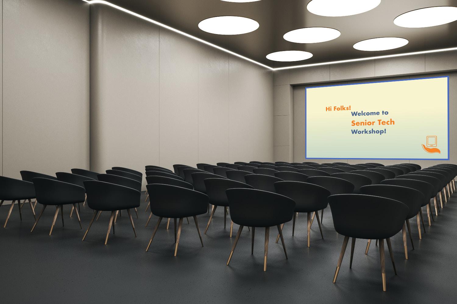 From the graphic design solution standpoint, the workshop event aims to educate participants about the problems and is surrounded by like-minded people, creating a comfortable environment for all. Senior Tech also offers a website solution to keep in touch for upcoming events and be a part of the Senior Tech community. Lastly, videos from the YouTube channel provide tutorials on how to use social media apps.