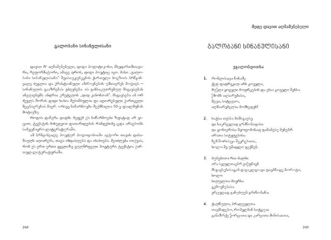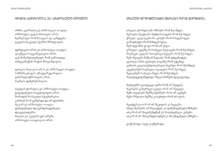 Semdgeneli: diana anfimiadi poezia bavSvebis gulisken misasvleli yvelaze sayvareli enaa. am wignSi qarTuli poeziis nawili SevkribeT, romelic Tavis patara mkiTxvelebs elis. aq cnobili sabavSvo leqsebis garda, zogierTi `saufroso~ leqsicaa, romelic bavSvebisTvis iseTive gasagebi da sayvarelia, rogorc didebisTvis. xalxuri poezia, amiranis eposi, `vefxistyaosani~… naxeT, rogor grZeldeba qarTuli poeziis gza, amoarCieT Tqveni sayvareli leqsi.