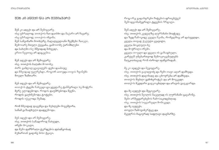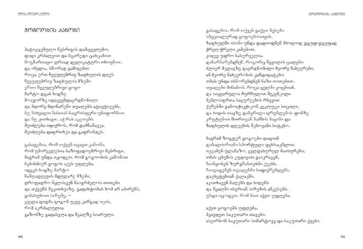 Semdgeneli: diana anfimiadi poezia bavSvebis gulisken misasvleli yvelaze sayvareli enaa. am wignSi qarTuli poeziis nawili SevkribeT, romelic Tavis patara mkiTxvelebs elis. aq cnobili sabavSvo leqsebis garda, zogierTi `saufroso~ leqsicaa, romelic bavSvebisTvis iseTive gasagebi da sayvarelia, rogorc didebisTvis. xalxuri poezia, amiranis eposi, `vefxistyaosani~… naxeT, rogor grZeldeba qarTuli poeziis gza, amoarCieT Tqveni sayvareli leqsi.
