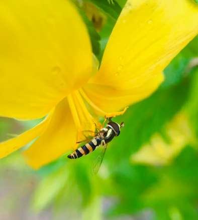 Busy bee buzzing, On a yellow flower bright, Amidst greenery, Nature's perfect sight