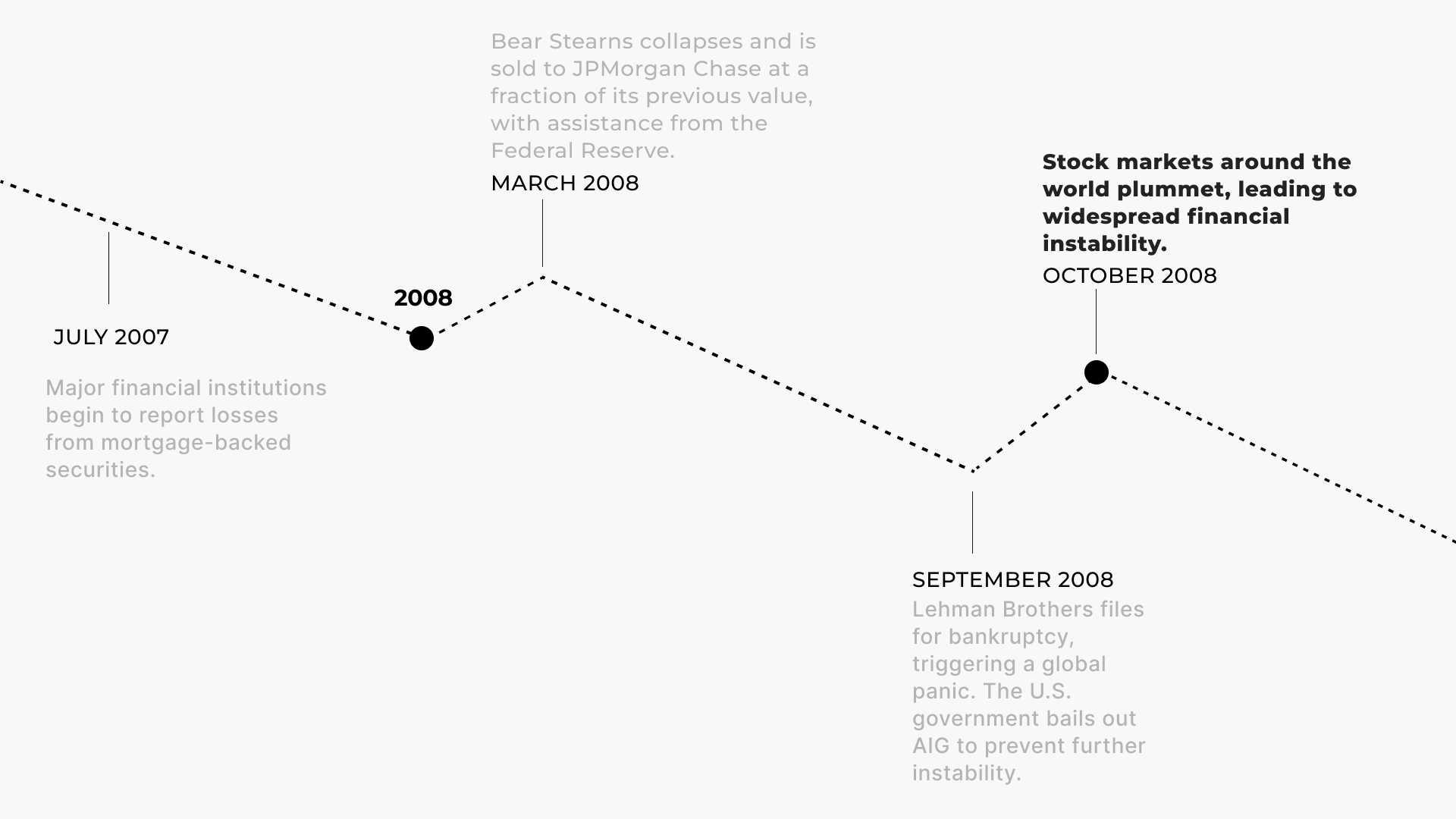 We chose to touch upon the 2008 economic crisis for its significant global impact. We wanted to better understand its complexities and to present the information in a clear and straightforward manner, making it accessible for others.