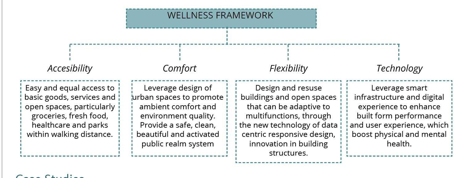 The research strategically explores how integrated townships in post-pandemic India can leverage a wellness framework —emphasizing accessibility, comfort, flexibility and technology—to enhance user well-being. It provides actionable insights for creating sustainable urban spaces that drive equity, resilience, and community-driven engagement.