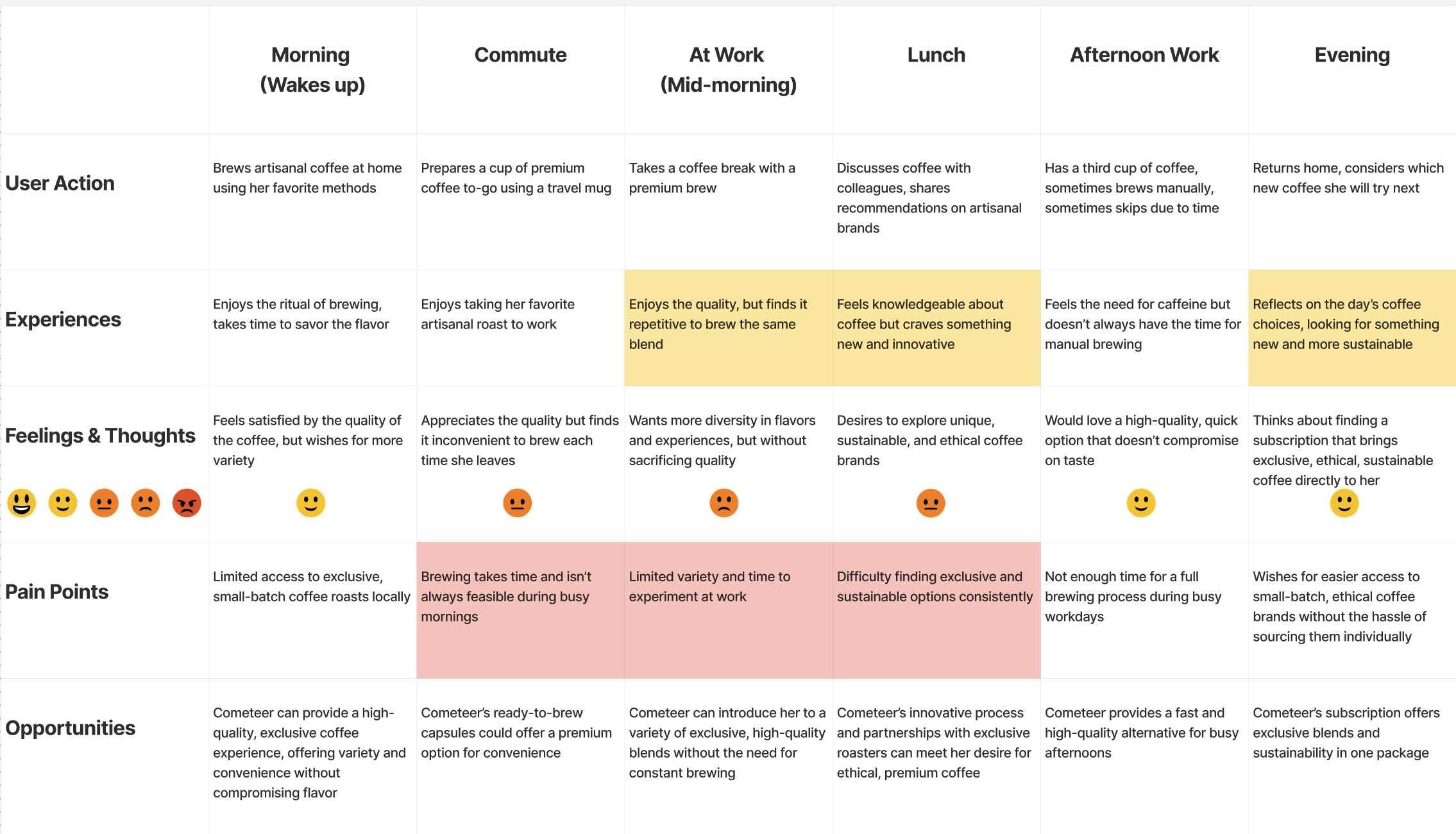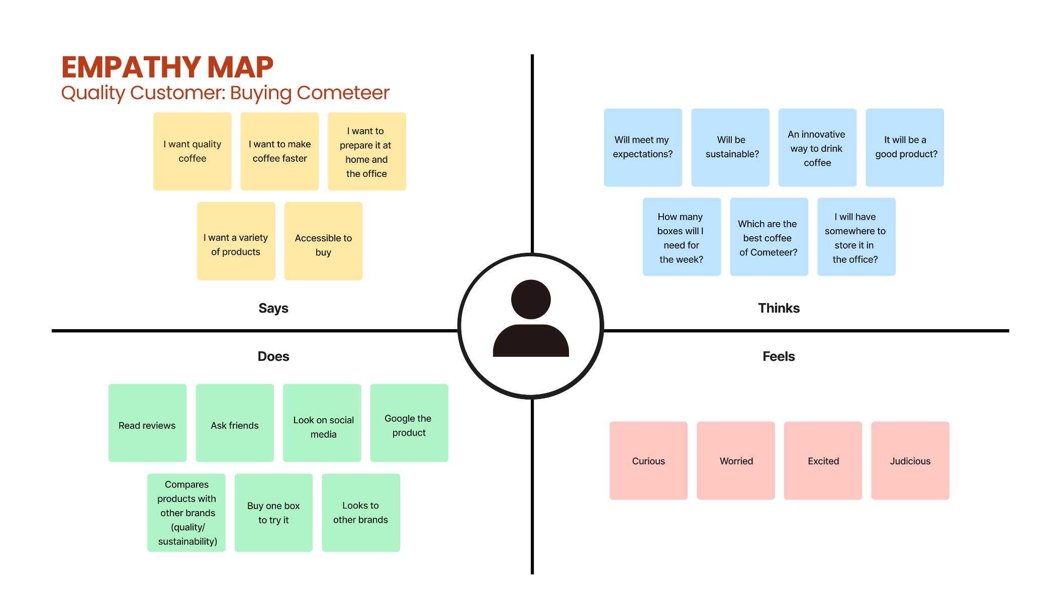 Gathering insights from reviews, online feedback, and testimonials to analyze Cometeer’s customer base. Using journey maps, empathy maps, and other frameworks to map new target audience demands.