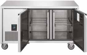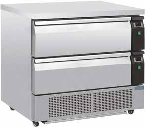 Two-in-one counters that can switch from fridges to freezers at the touch of a button. Ideal for kitchens with limited space. Feature heavy-duty stainless steel drawers.