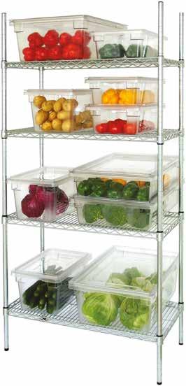 Break-resistant, clear polycarbonate containers. With a temperature range of -40°C to 100°C.