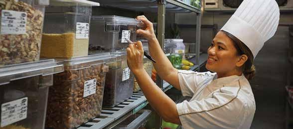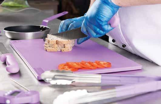Colour-coded utensils help identify the correct equipment for each food type, reducing the risk of cross-contamination.