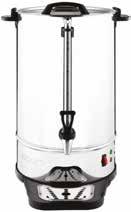 Durable, with water level indicator and adjustable thermostat. Features boil dry safety cut-off switch. Double wall design keeps exterior cool to the touch and secure twist-lock lid minimises spills.