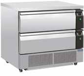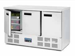 Refrigerated storage counters with stainless steel work surface. Space saving compressor/condenser fitted underneath. Fully automatic controller with constant digital display. Auto defrost. CFC free.