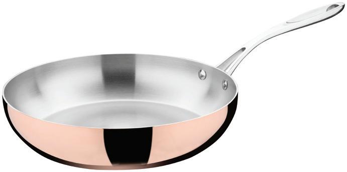Made from aluminium thermocore sandwiched between stainless steel. The triple-wall construction evenly distributes heat without hotspots for consistent results. Brushed-finish interior, with hardwearing mirror polished copper exterior. Handwash only.