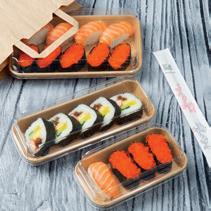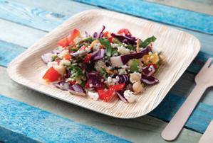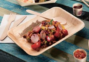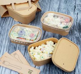 Commercially compostable bagasse bowls. Clear PET Lids are widely recyclable.