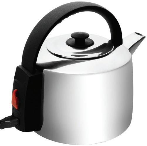 Large-capacity stainless steel kettle with detachable cord, automatic boil-dry cut-out, easy-fill wide lid and water level indicator.