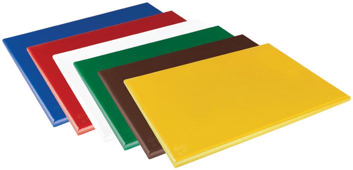 Tough, durable and made from high quality polyethylene, these colour coded chopping boards are non-absorbent, odourless and non-toxic. 12(H) x 300(W) x 450(L)mm. 25(H) x 600(W) x 450(L)mm.