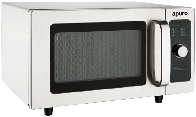 Stainless steel microwaves with easy clean flat static base that takes up to 2/3 size gastronorm containers. Programmable version features 20 programmes.