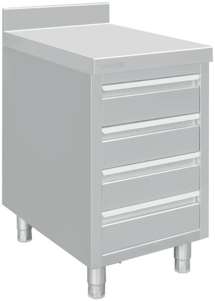Make the most of your kitchen space with this strong, easy-clean, stainless steel workstation. Adjustable feet for easy installation. Featuring four sliding drawers and a 100mm upstand, this unit is an all-in-one storage/ workstation hybrid.
