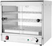 Hold and display cooked pies, sausage rolls and pasties at the correct serving temperature. Stainless steel body, adjustable feet and metal control knobs. Display racks can be installed horizontally or at an angle. Models with internal light in the ceiling of the machines produce a warm coloured light, further enhancing the appeal and presentation of the food.