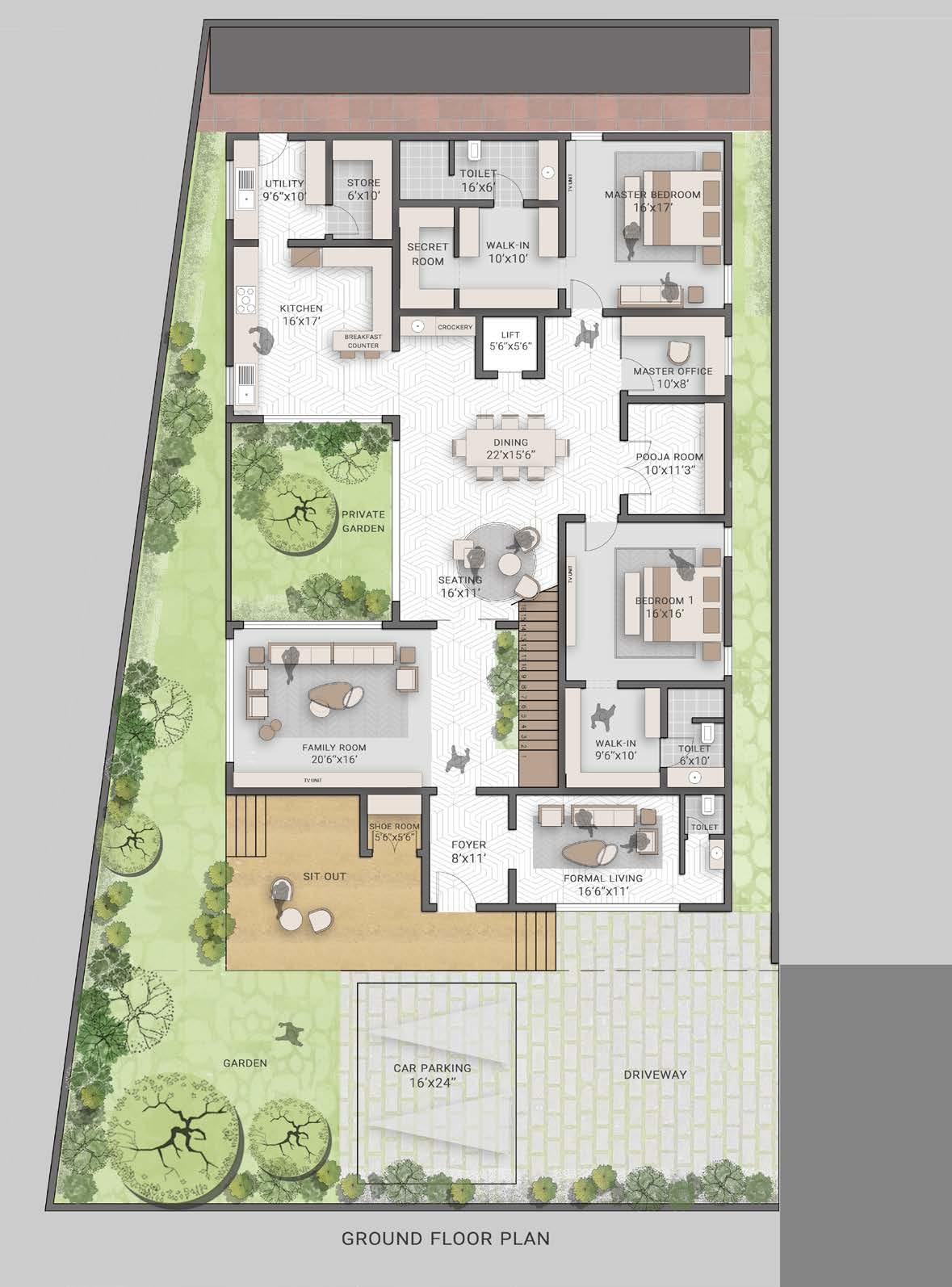 These are the sample interior concepts of the house where we propose while presenting the initial stage of the design and we designed in such a way that the house should be seamless from exterior to interior.