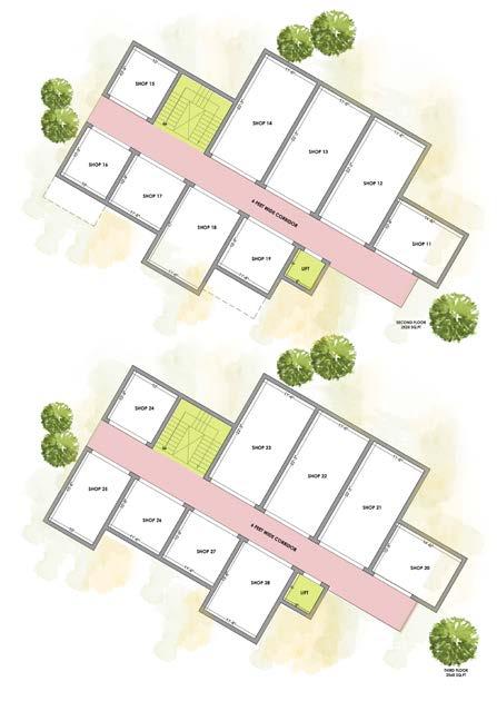 The building is faced towards the north and the chances of getting harsh sunlight is less so we added insulated glass on the facade to make the volume of the shops looks bigger in scale and addition of jaali to bifurate the glass and a additional element to the facade and to make the building as a landmark in that specific location.