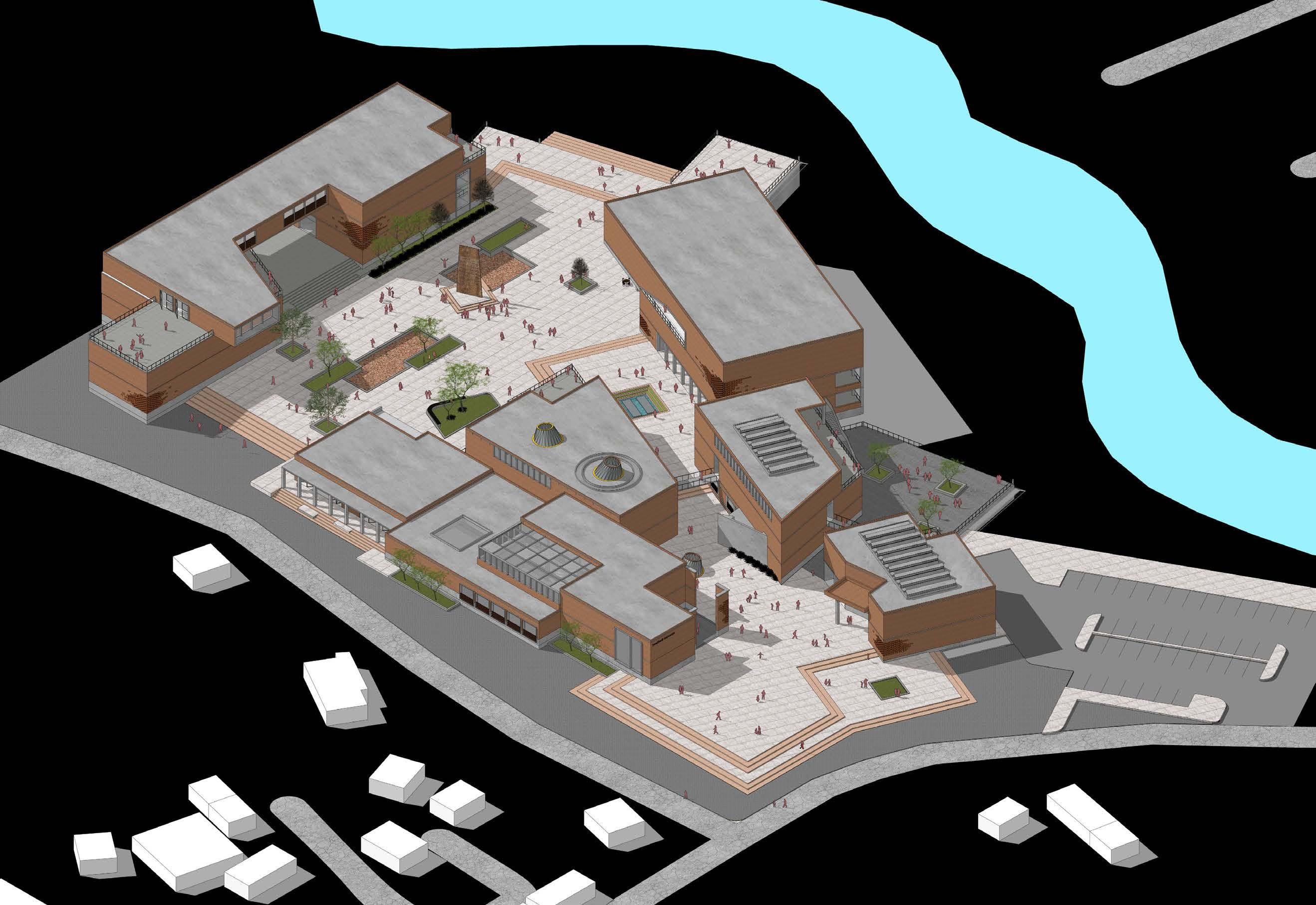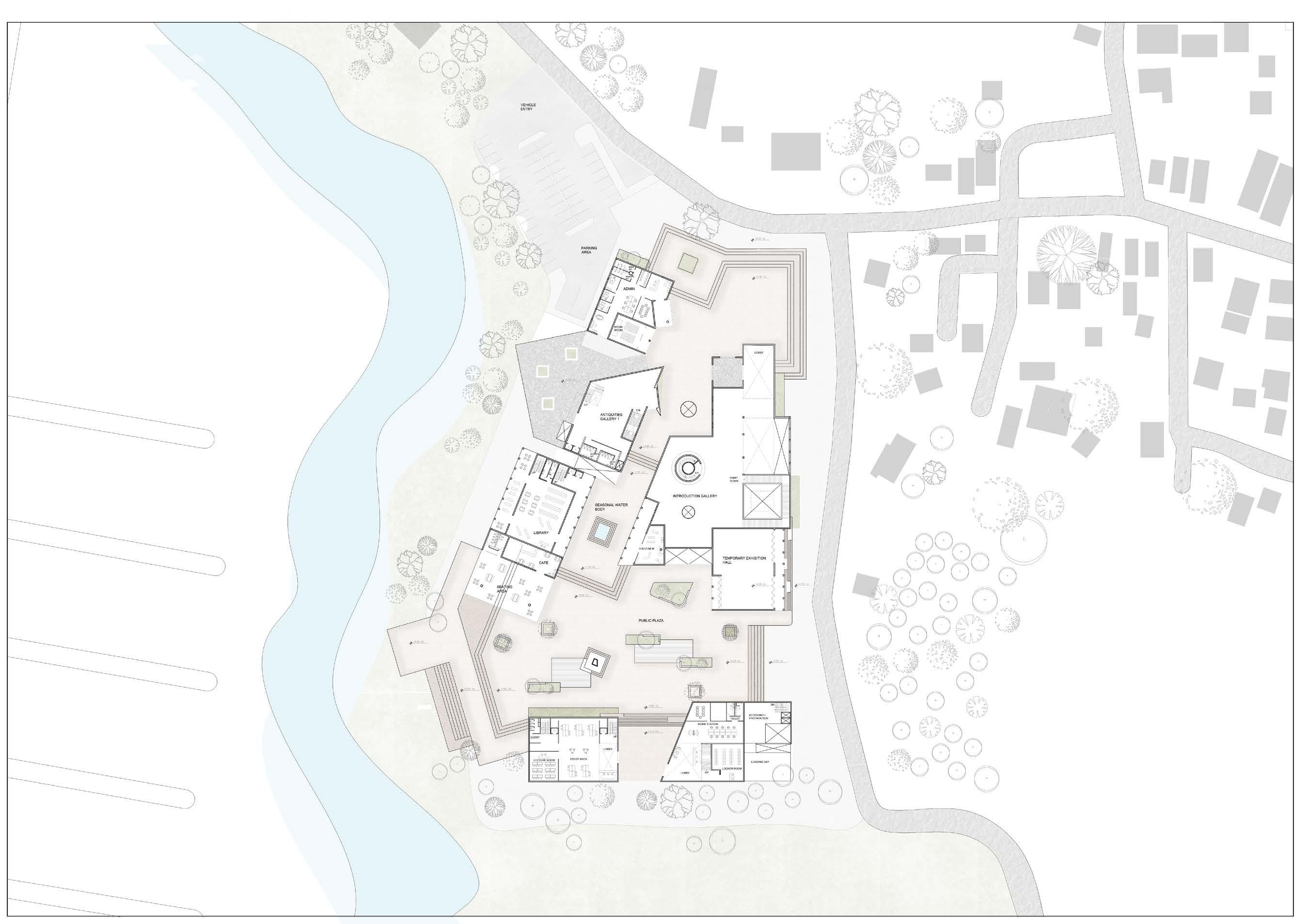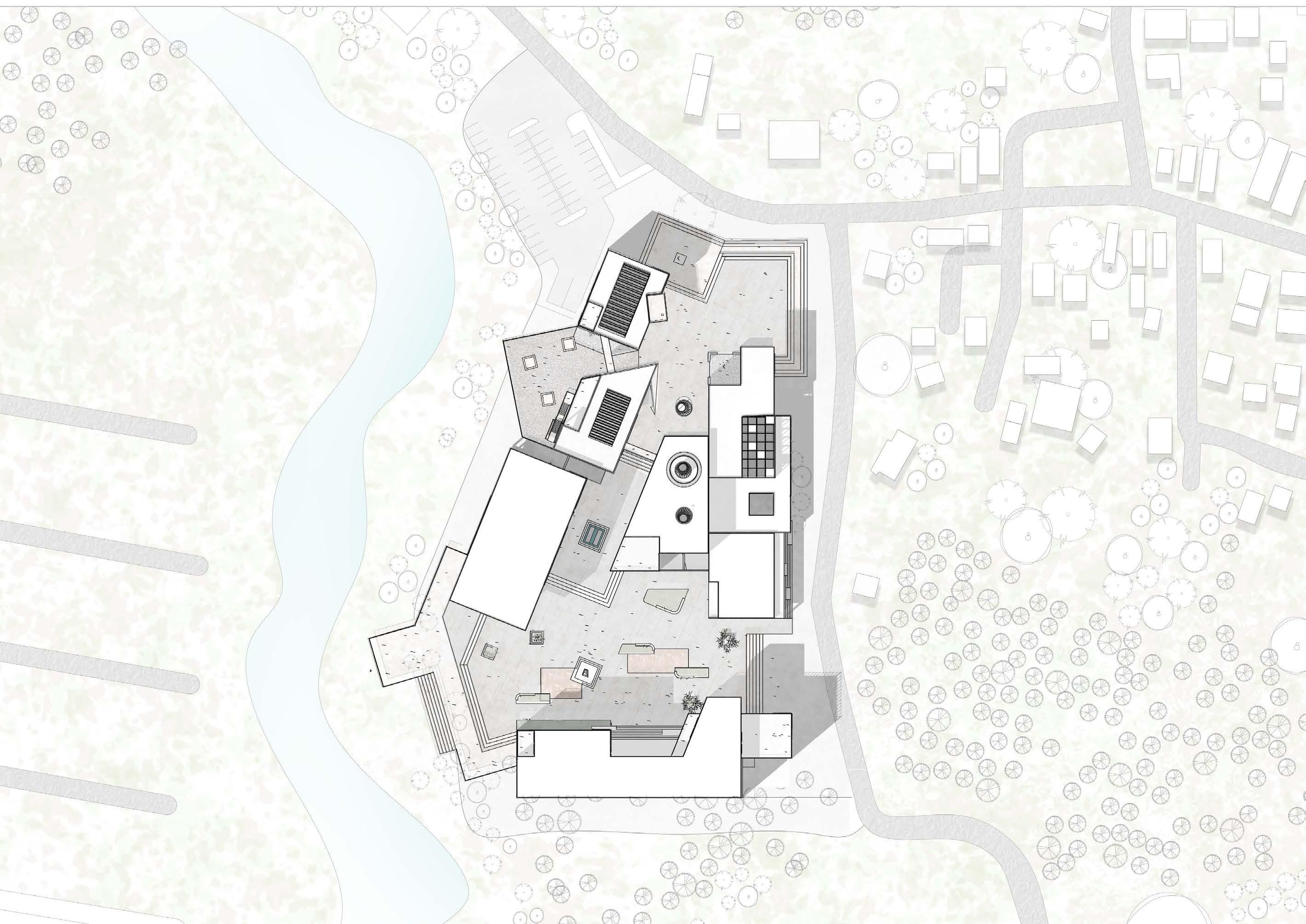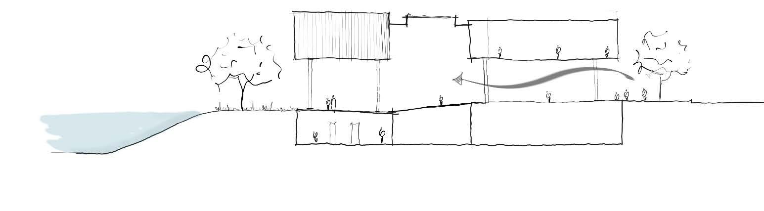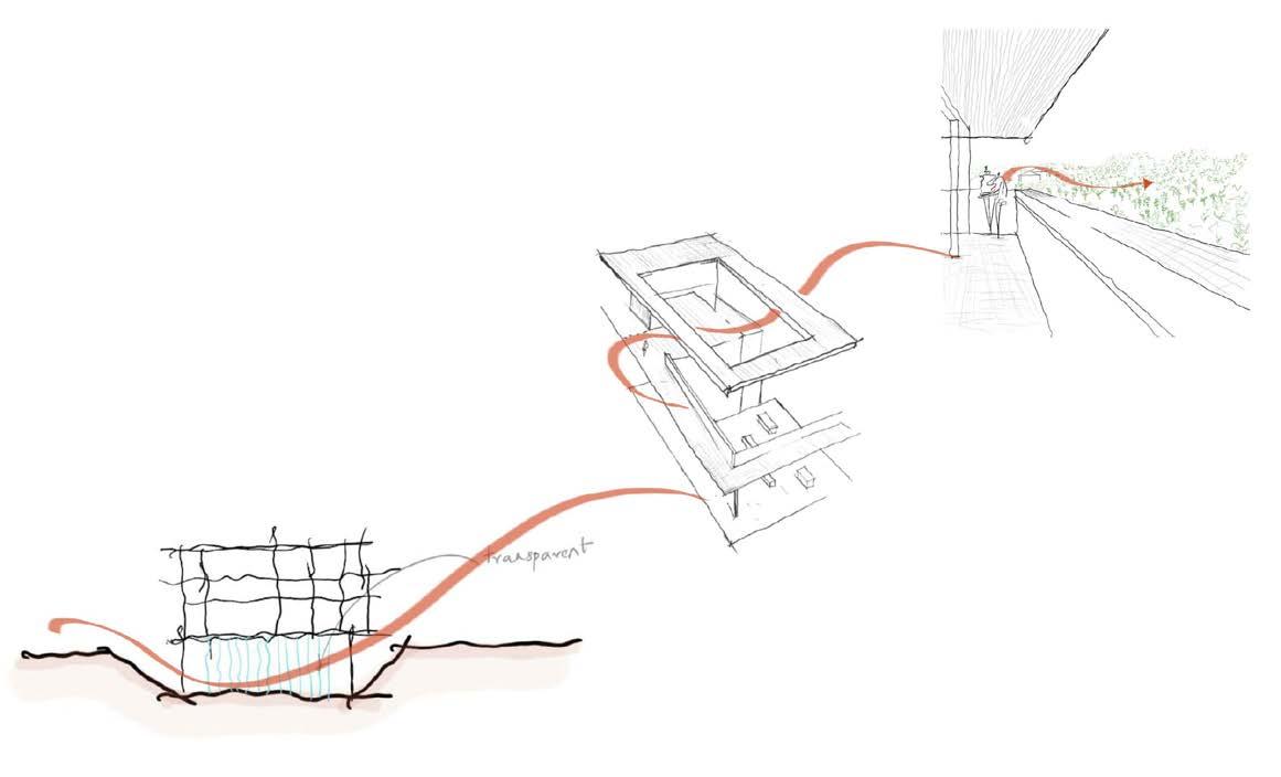 To create visual connectivity from the roadside edge to the opposite river edge. This is a semi-open space that is invitable also an extension of public spaces.