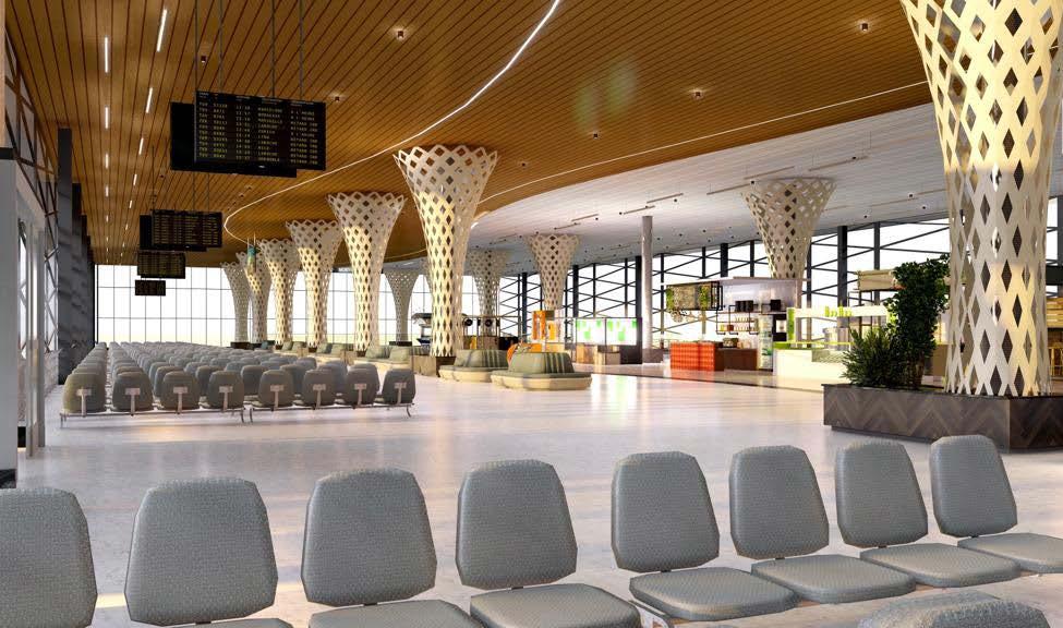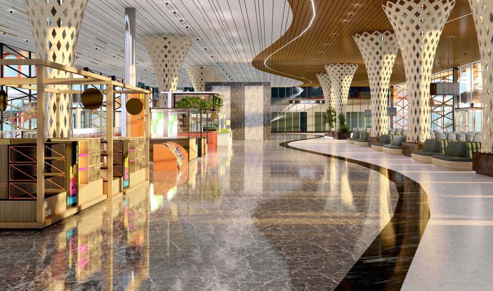 Interior Air Concourse proposal: Government officials of the railway authority plan to design the Kollam railway air concourse to resemble an airport, with a concept inspired by the flow of fluids. The materiality includes Hunter Douglas ceiling panels for durability and aesthetics, GFRC panels for column cladding offering strength and versatility, and high-durability 20 mm full-body tiles for robust, wear-resistant flooring. The design integrates modern elements to ensure a sleek, efficient, and comfortable environment for passengers. These are all the two options given as a proposal.