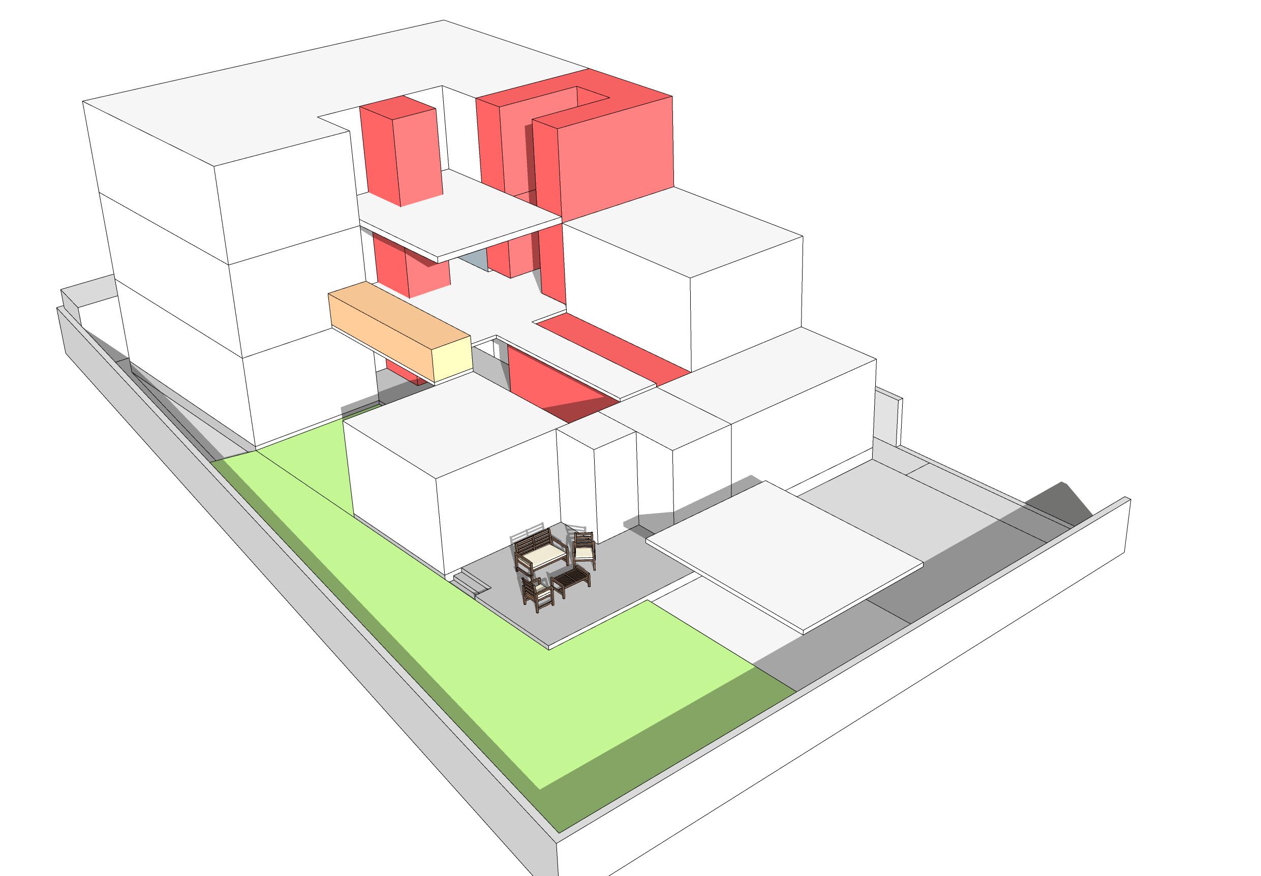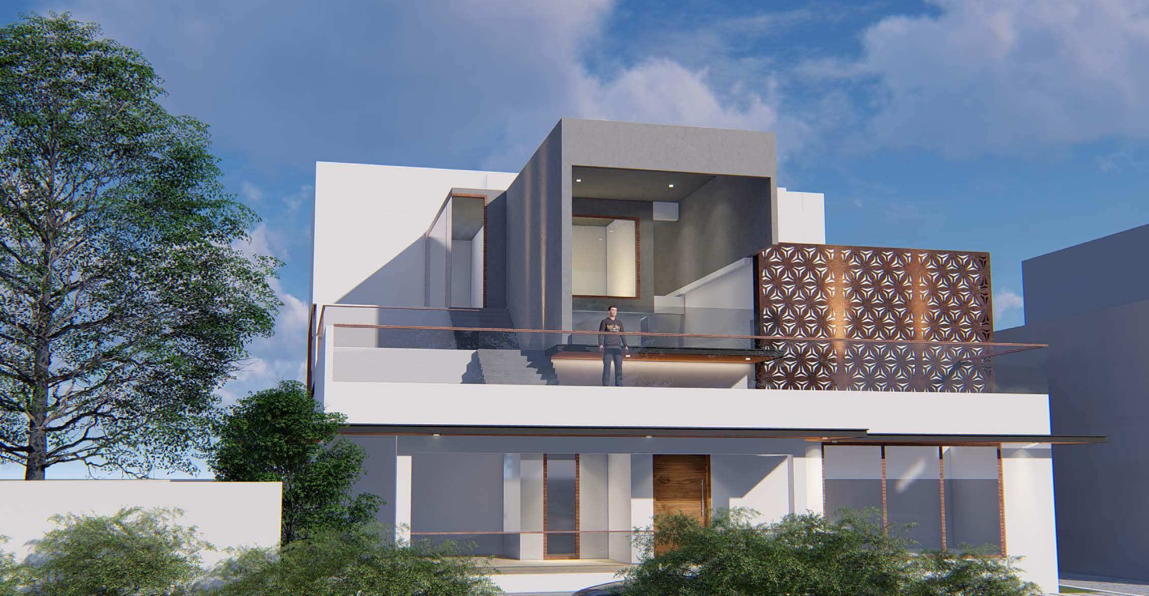 This is the model generated for the initial conceptual design of the plan and as per the client vision of the house has to be ageless and modern we decided to move forwarded to go with the shades of concrete and white.