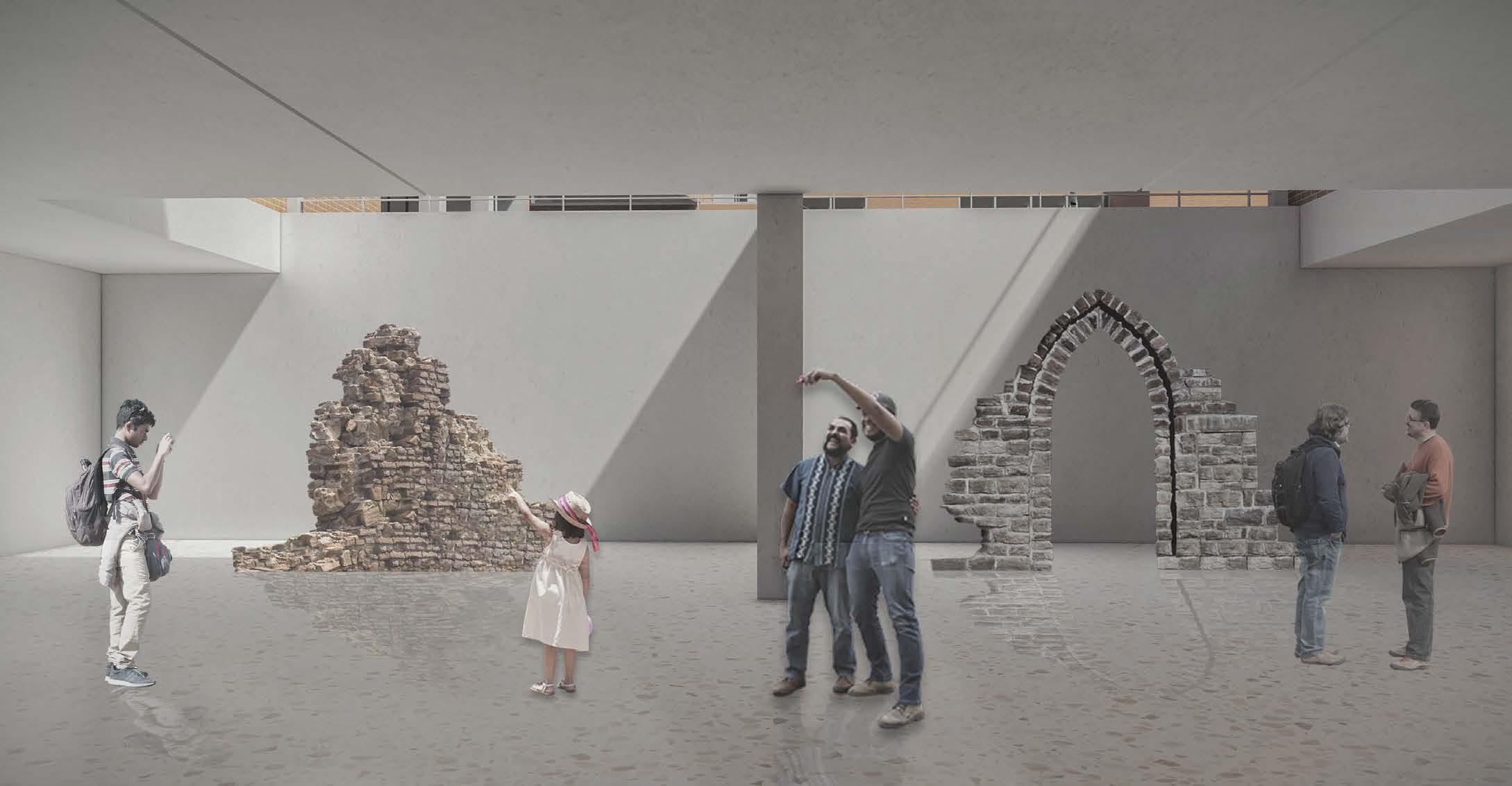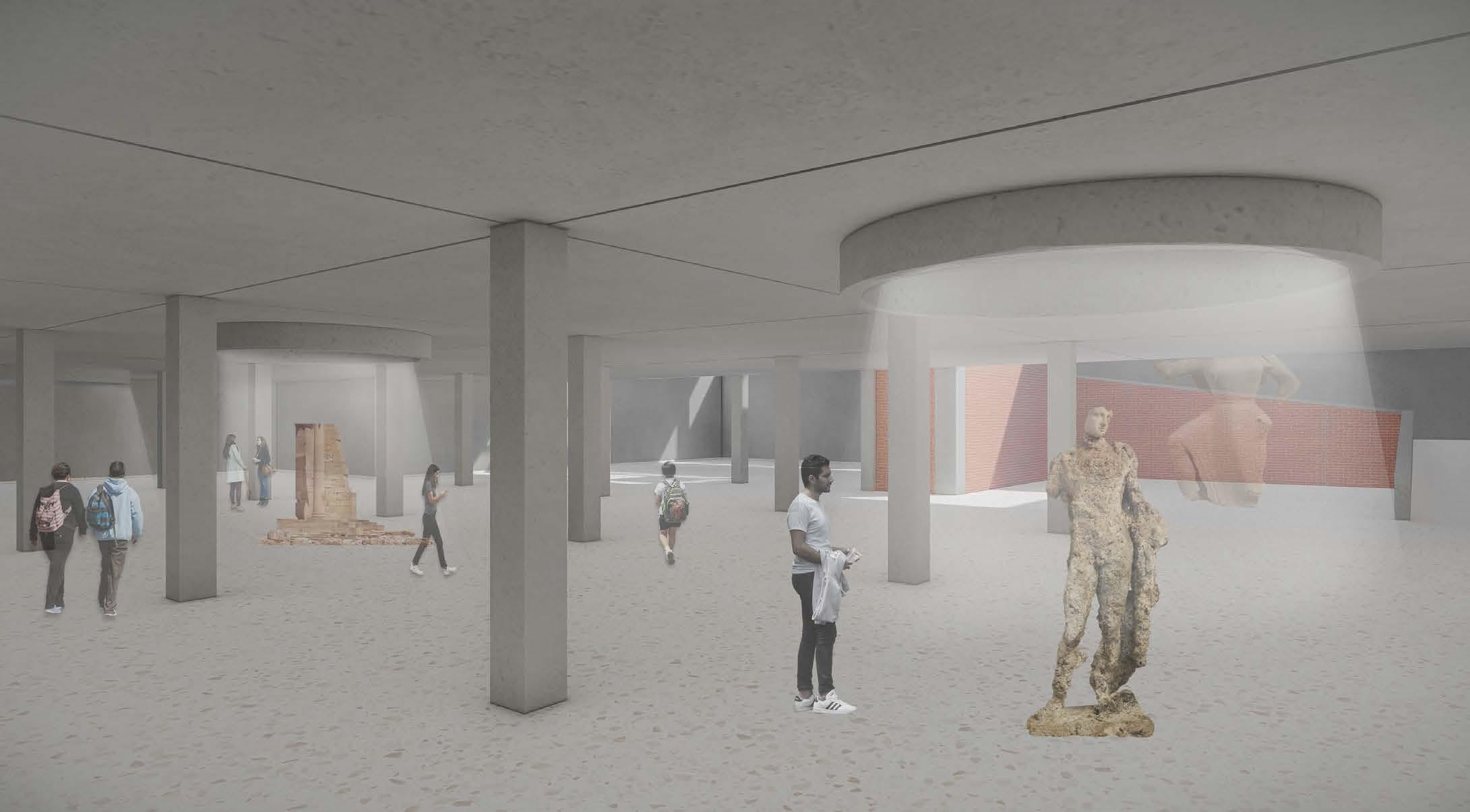 Looking at the excavation grid and using the base in an indirect manner enables the user to have a disconnect from the physical structure and would give the feel of being within the excavation or taking back to the past and giving the liveliness is the overall language of the main core idea.