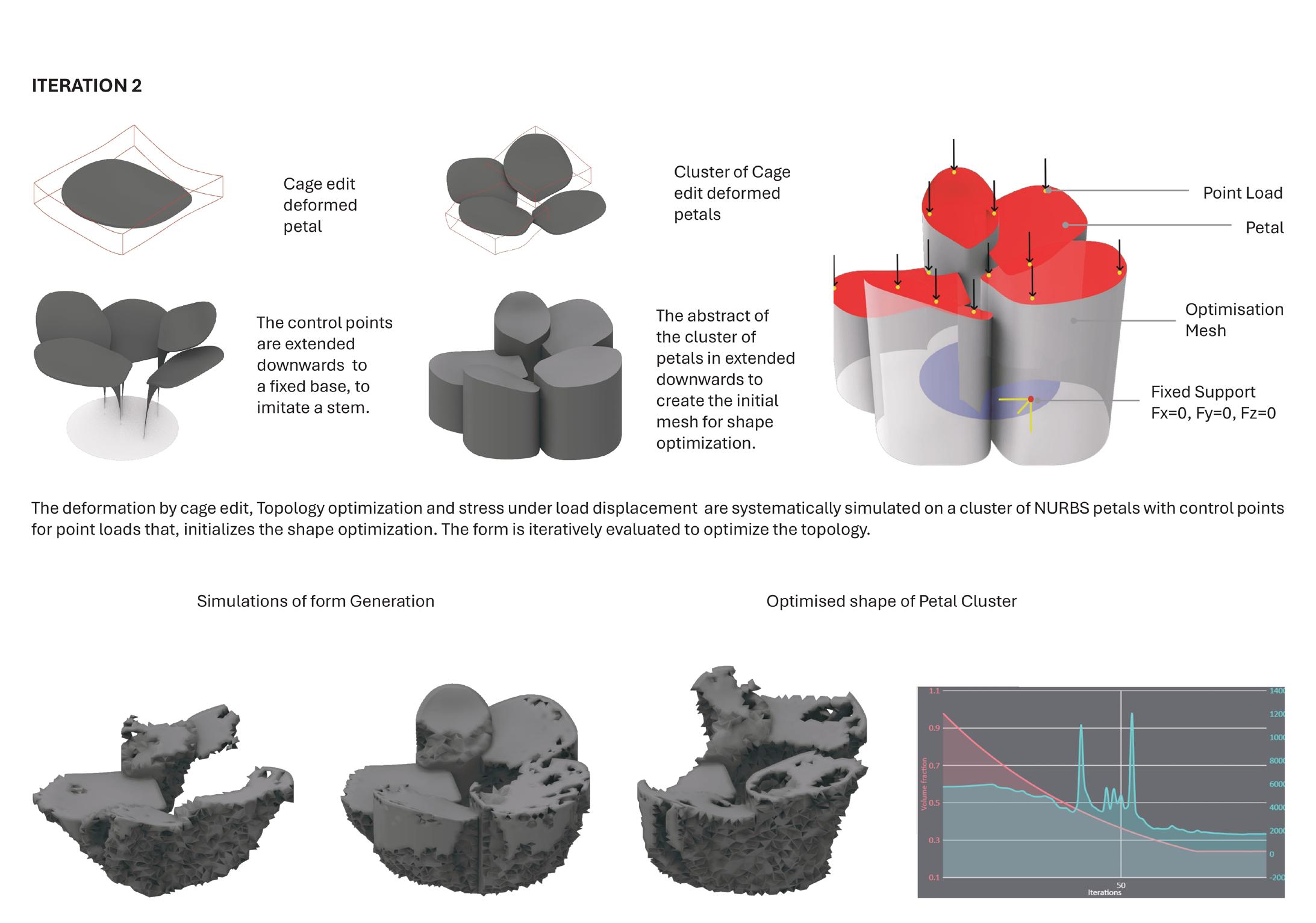 Creating the base geometry and editing the nurbs of the surface. Initialising the base arrangement. Giving the form the support. Then giving the load to the form which acts a on the support and the support will be optimised and will be rebuilt.