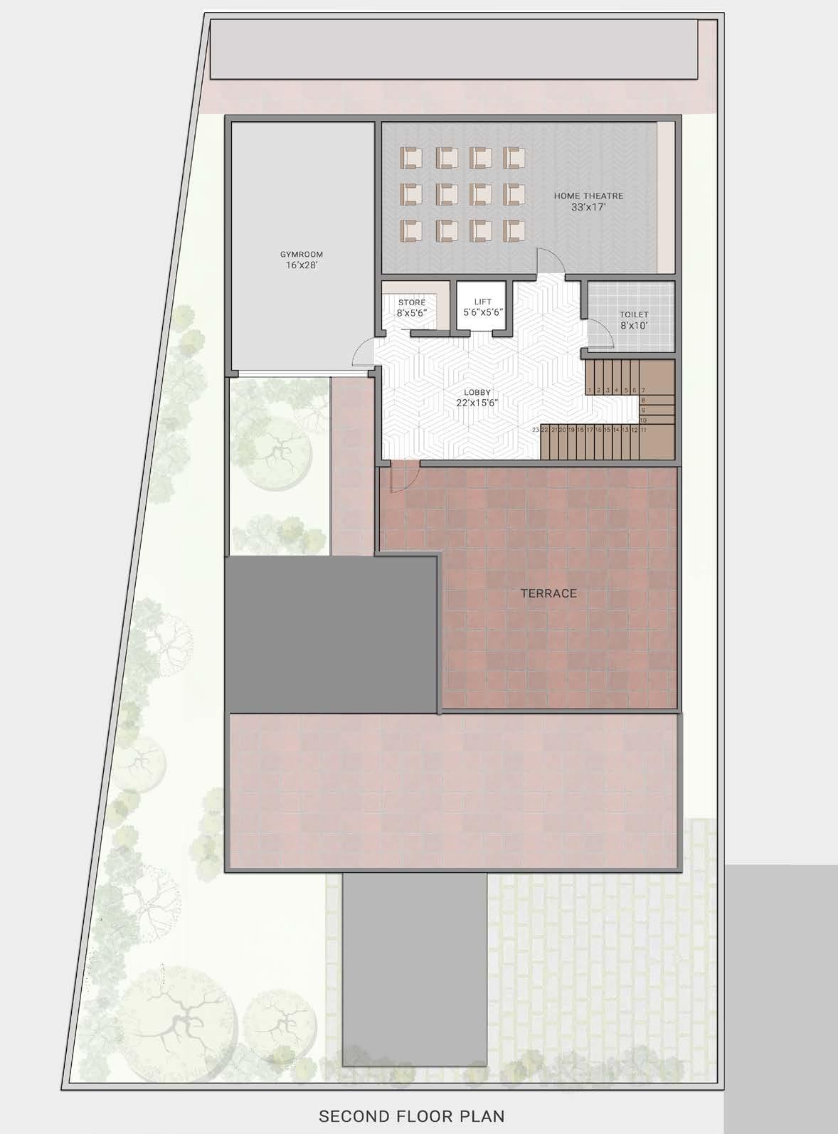 When the users go level down gives them the earthy feel and when the user is above, onlooking the site gives them the feel of looking into the excavation pits.