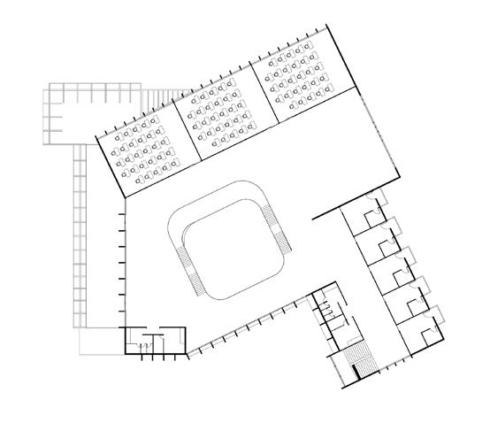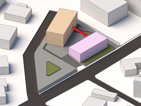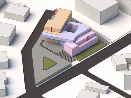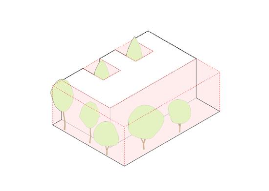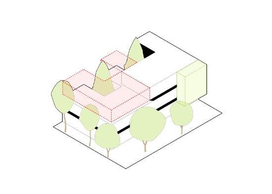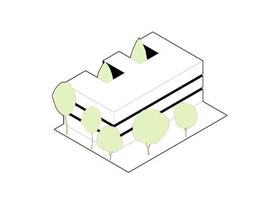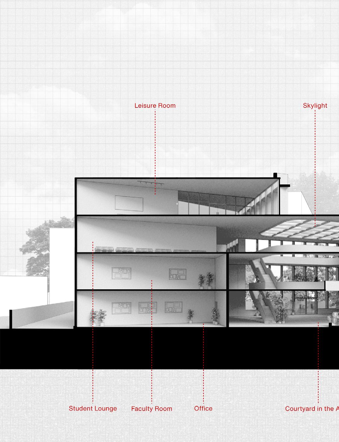 The two blocks are then connected using a mass which forms the volumes for academic spaces and the atrium.