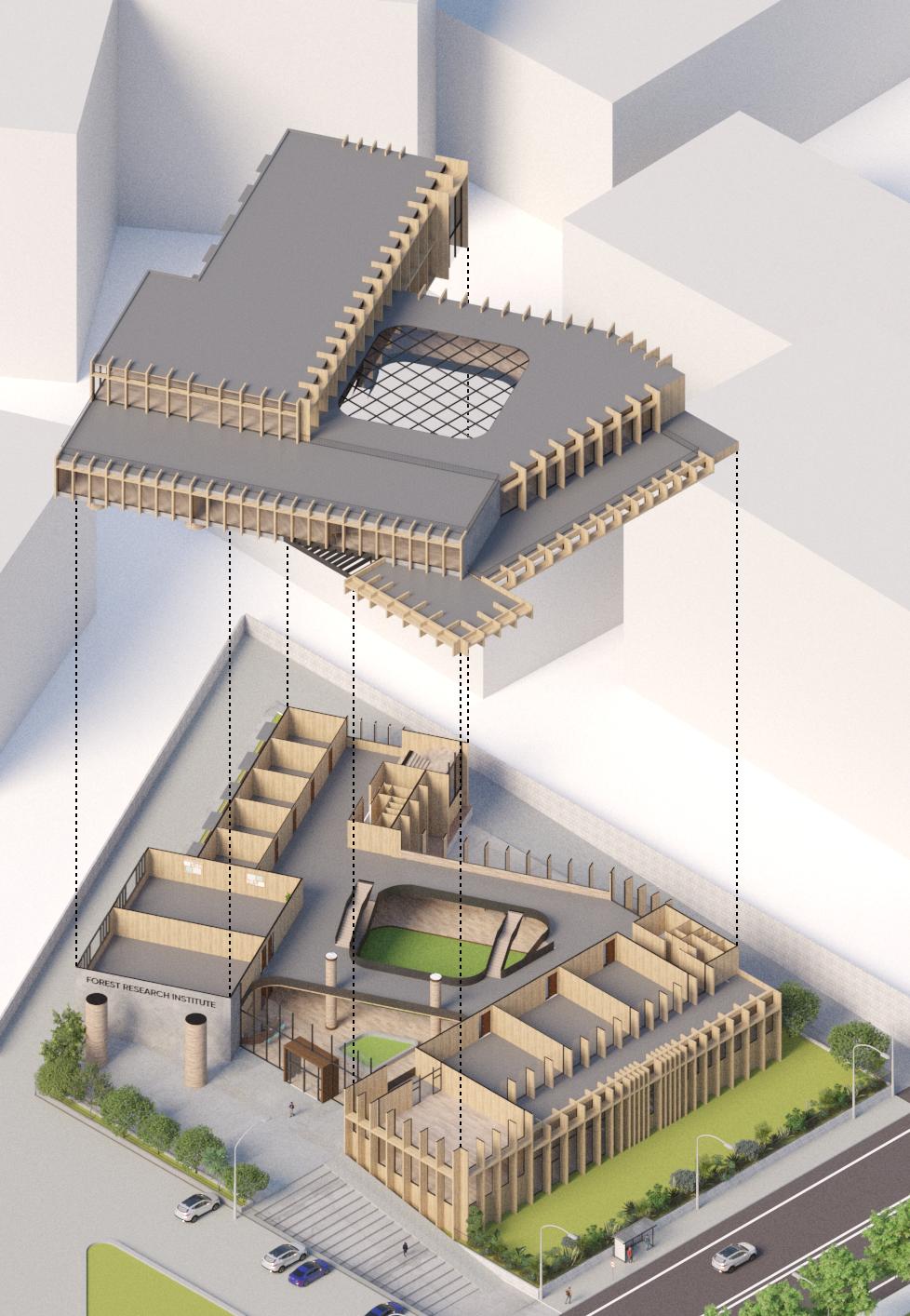 Architecture Portfolio 46 Axonometric View. Kaanan | Forest Research Institute