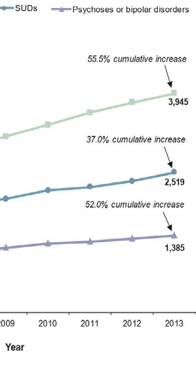 (2) Increasing Number of Behavioral Health Patients: The prevalence of mental illnesses and substance use disorders has surged globally, affecting an es-timated 970 million people. In the United States, approximately 1 in 25 adults lives with a severe mental illness such as