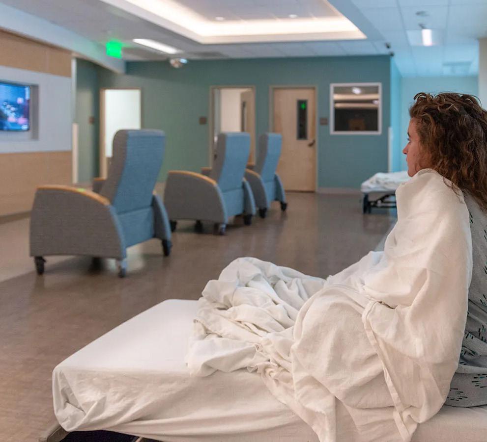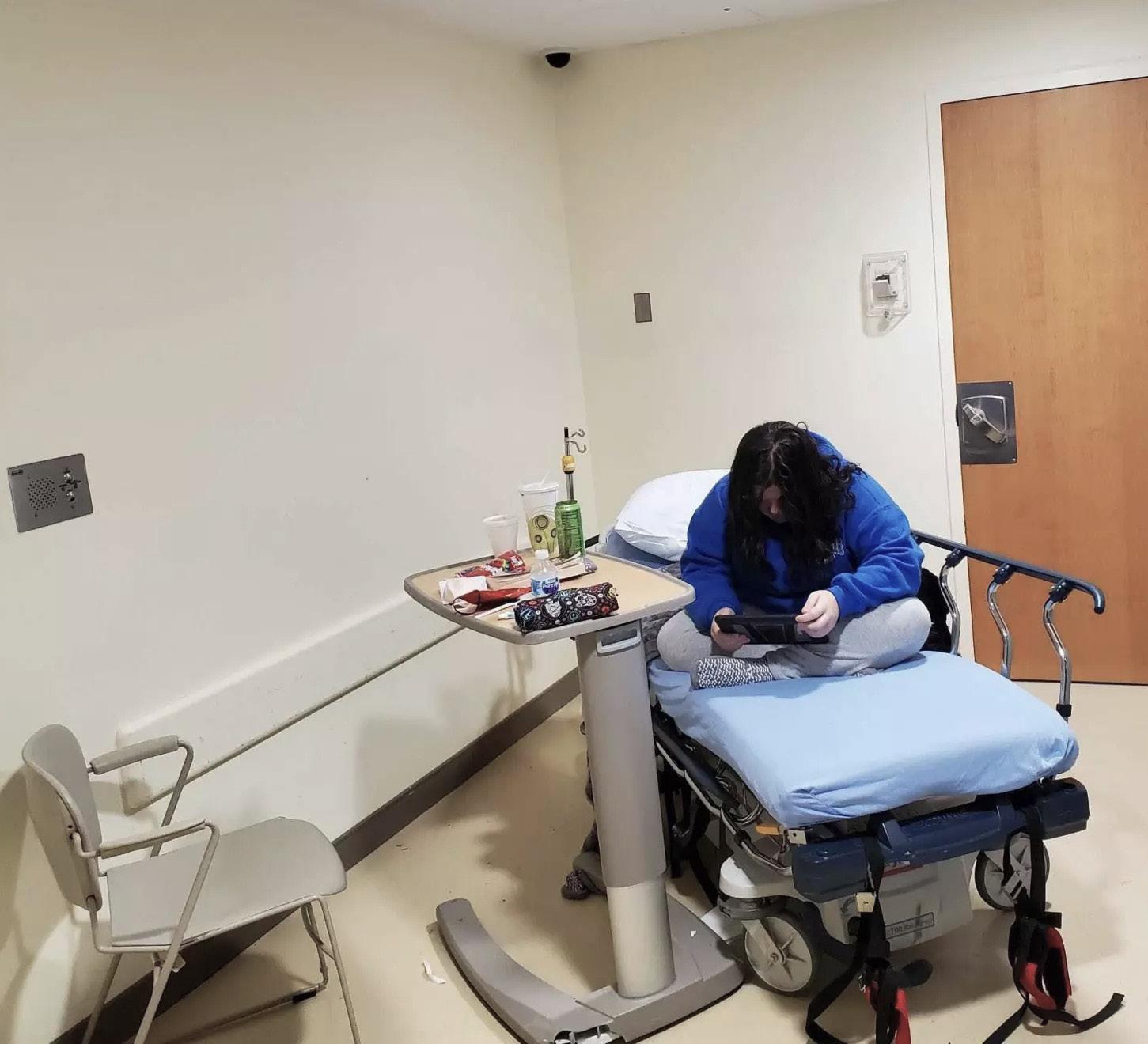 Figure 1: For days, Melinda lived in a small, windowless room off the ER, awaiting an open spot in a psychiatric care unit. After a failed escape attempt, she was confined further—only allowed out to use the bathroom.