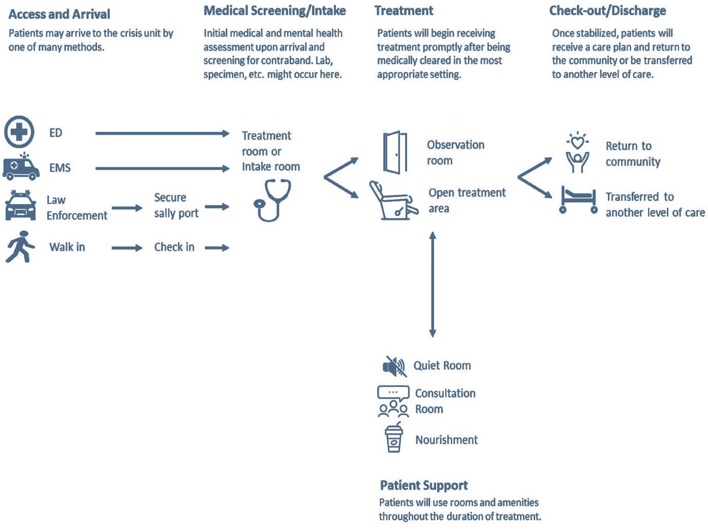 6 Flow Chart for a Behavioral Health Care Unit. Montgomery, M., Upton, S., State, W., & Zeller, S. (2022).