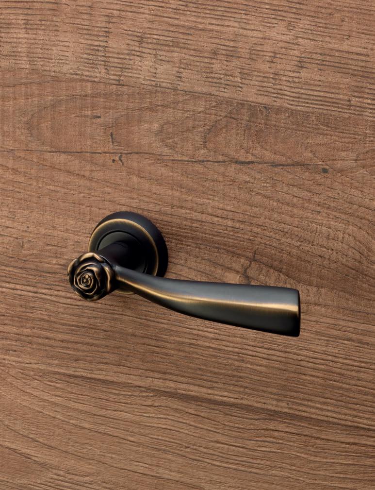Montaggio maniglia con rosetta e bocchetta 009-0��-�02-�03-�08��2-��3-��5 con viti a legno / Handle fitting with rose and key hole 009-0��-�02-�03-�08-��2-��3-��5 with wood screws