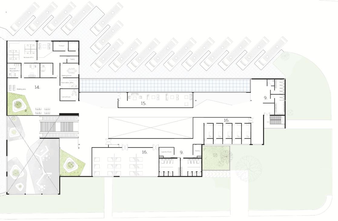 environment for these young children that would be filled with natural light and ventilation. The key objective of the The building consists of a branch structure in the form of verandahs, ensuring an efficient combination of teaching divided by a brick jaali cooridor provides an open and spacious structure. .
