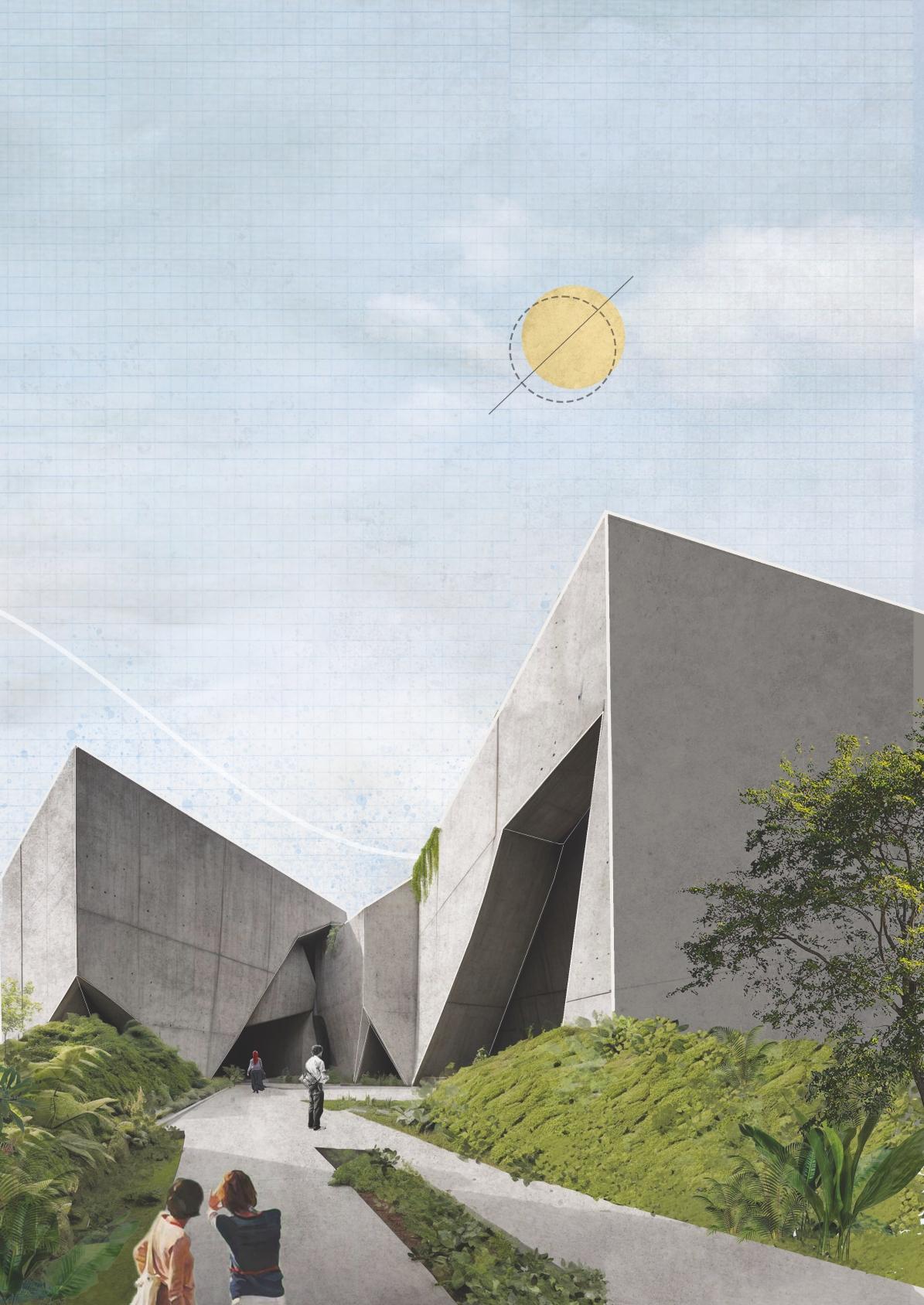 The Cave-like opening is inspired by Ajanta caves or historical monuments. Mountains (Purana Quila), fields (National Zoological Park), trees, and stones composed our first impression of the base with Materials such as RCC, stainless steel and Fiberglass structures provide solid form with a little transparency.