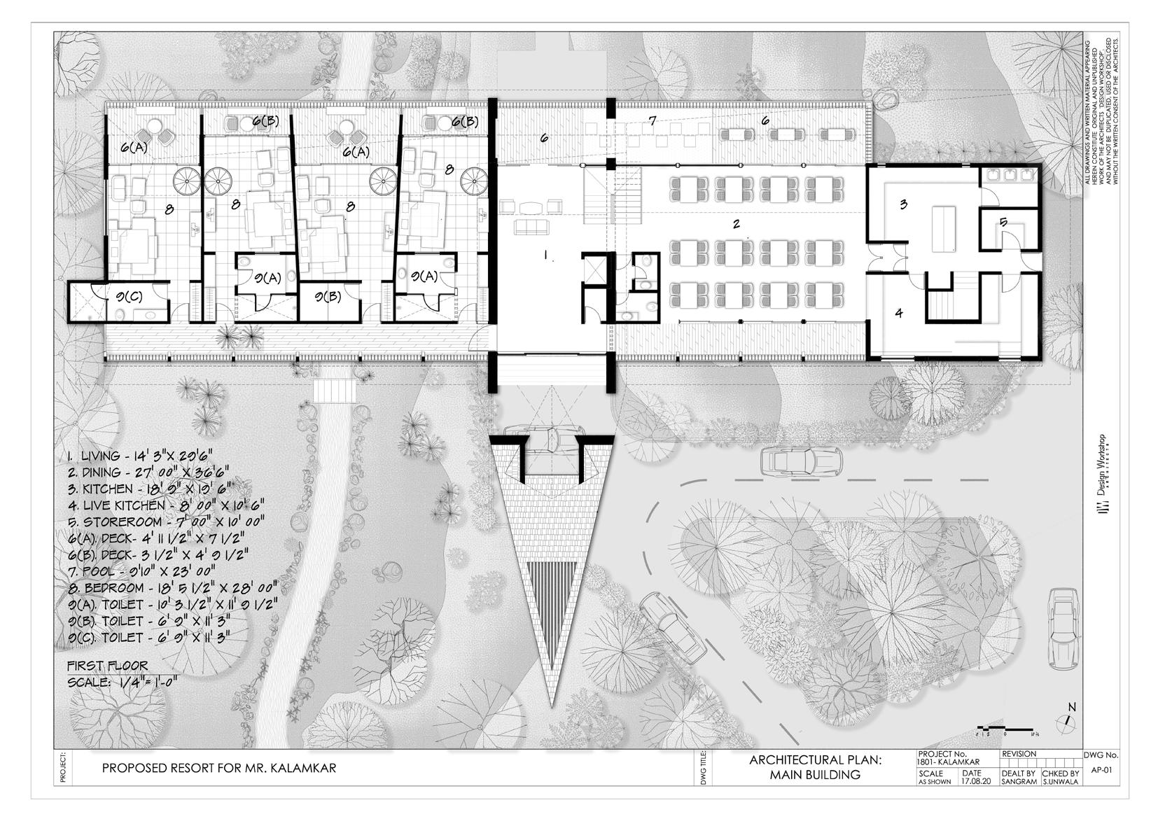 DATE OF PLOT : GENERAL NOTES: 1.ALL THE DIMENSIONS ARE IN METRIC UNLESS OTHERWISE NOTED. 2.ALL DIMENSIONS ARE FROM UNFINISHED SURFACE TO UNFINISHED SURFACE UNLESS OTHERWISE NOTED 3.THE DRAWING SHALL NOT BE SCALED. ONLY WRITTEN DIMENSIONS SHALL BE FOLLOWED. THE CONTRACTOR SHALL REQUEST, FROM THE ARCHITECT, NECESSARY DIMENSIONS NOT SHOWN ON THE DRAWINGS. 4.ALL FINISHES ARE AS PER DETAILS & SPECIFICATIONS. 5.ALL LEVELS ARE WITH REFERENCE TO BENCH MARK AS ESTABLISHED ON THE SITE.i.e.TOP OF CENTER OF ADJOINING ROAD 6.THE CONTRACTOR SHALL CHECK AND VERIFY ALL LEVELS, DATUMS AND DIMENSIONS ON SITE AS PER ARCHITECTURAL DRAWINGS AND SHALL REPORT ANY DISCREPANCIES OR OMISSIONS TO THE ARCHITECT, PRIOR TO START OF WORK & DURING THE CONSTRUCTION PHASE 7.ARCHITECTURAL DRAWING IS TO BE READ AND UNDERSTOOD IN CONJUNCTION WITH WITH DETAILS,LARGE SCALE DRAWINGS STRUCTURAL, ELECTRICAL,PLUMBING,AND ANY OTHER CONSULTANT/S DOCUMENTATION. AS MAY BE APPLICABLE TO THE PROJECT PRIOR TO START OF WORK & IT'S DURATION 8.ALL LARGE SCALE DETAILED DRAWINGS SHALL SUPERSEDE SMALLER SCALE DRAWINGS