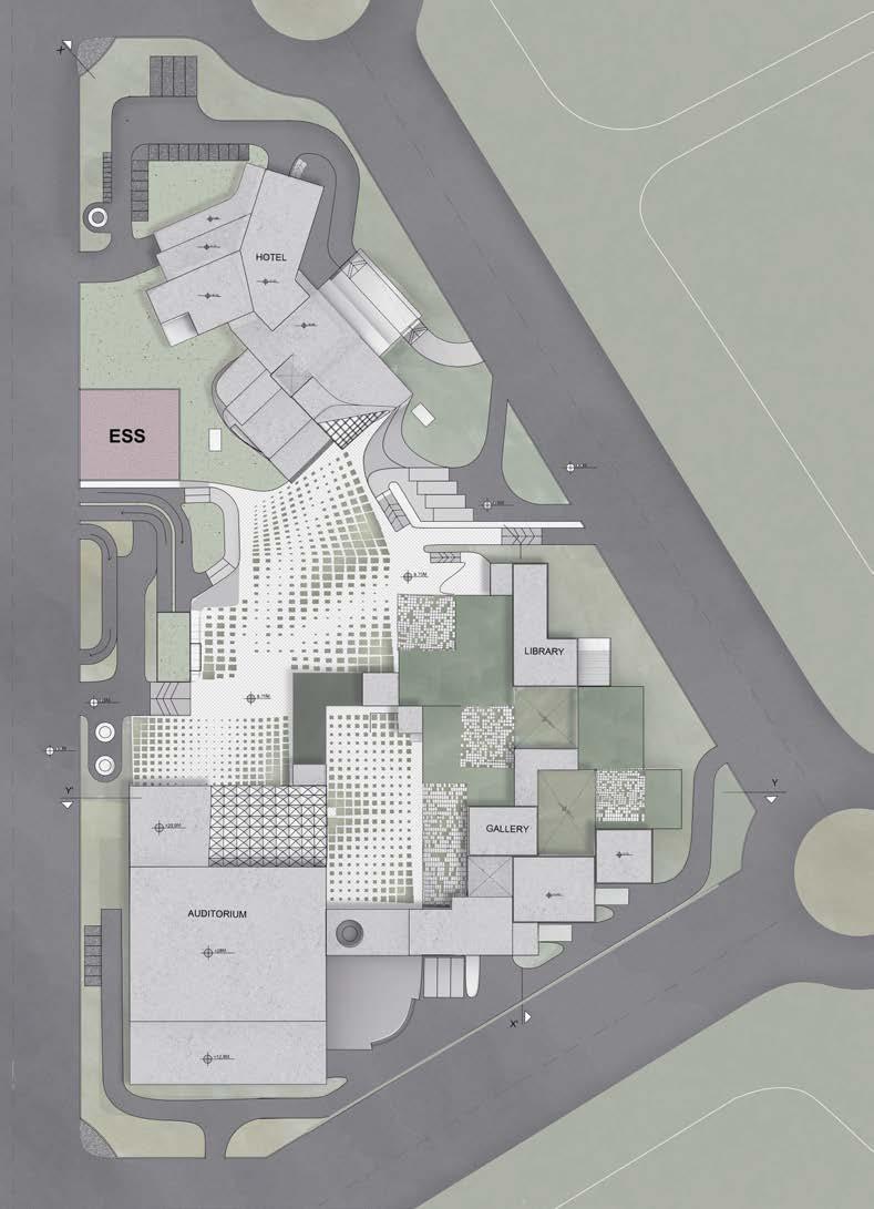 My area of focus was to suggest modified approach and sensibility for design of future public buildings. The project is a socio-culture center involving three major components- hotel building, exhibition and an auditorium. In the time of emergency, hotels and large covered spaces were used as hospitals and relief zones, similarly this is an attempt to design spaces to be reused adaptively during situations like this in future. Study also focused on, if the public buildings are closed, the built up can be used as landscape