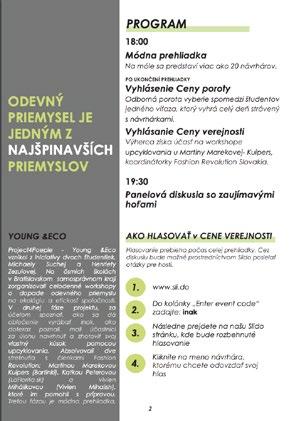 pre pracovníkov odevného priemyslu a účastníčky sa rozhodli kampaň podporiť na tomto podujatí preto, lebo oba projekty spolu tematicky súvisia a navzájom sa podporujú.