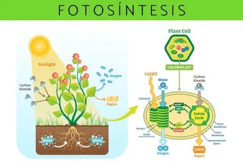 La fotosíntesis es el proceso bioquímico mediante el cual las plantas, las algas y las bacterias fotosintéticas convierten materia inorgánica (dióxido de carbono y agua) en materia orgánica (azúcares), aprovechando la energía proveniente de la luz solar.