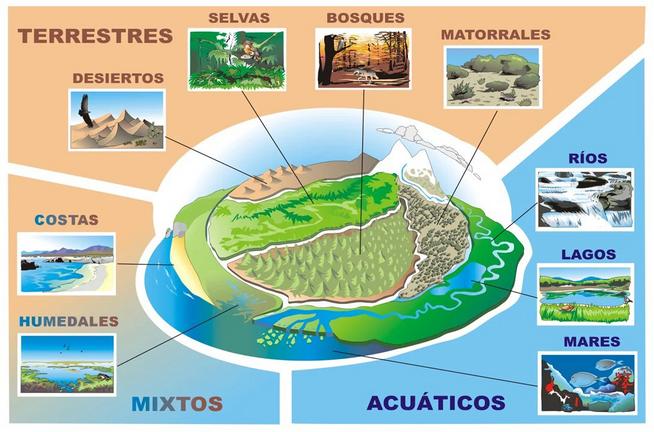 Ecosistemas acuáticos: Los ecosistemas acuáticos incluyen las aguas de los océanos y las aguas continentales dulces o saladas. Cada uno de estos cuerpos de agua tiene estructuras y propiedades físicas particulares con relación a la luz, la temperatura, las olas, las corrientes y la composición química