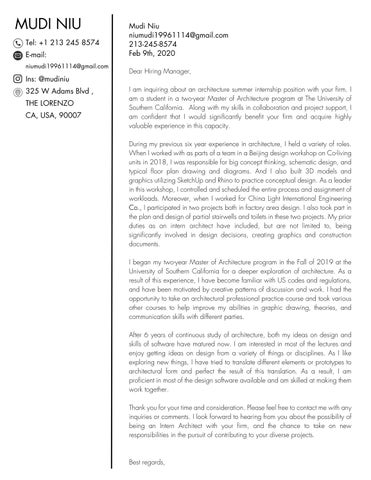 Mudi Niu Cover Letter