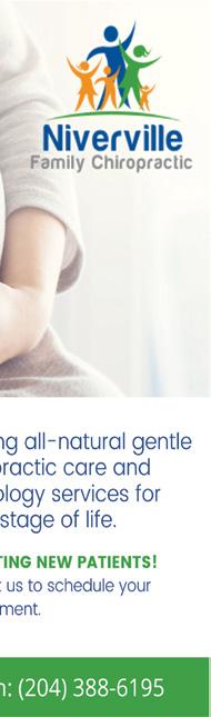 THE CITIZEN | MAY 2023 3 LOCAL NEWS WHAT'S INSIDE Managing Editor: Evan Braun Sales Manager: Ray Dowse Operations Manager: Cara Dowse Design/Production Manager: Dustin Krahn Contributors: Evan Braun, Brenda Sawatzky, Daniel Dacombe, Ty Dilello, Sara Beth Dacombe CONTACT US Letters to the Editor: editor@nivervillecitizen.com Advertising Sales: sales@nivervillecitizen.com Classifieds/General Information: info@nivervillecitizen.com Artwork/Ad Proofs/Graphics: ads@nivervillecitizen.com Box 266, Niverville, MB R0A 1E0 www.nivervillecitizen.com FREE TO SHARE. PLEASE RECYCLE. The advertising deadline is 5:00 p.m. on the 20th of each month. The paper will be distributed the first week of every month. Our commitment to the reader is to provide a professional and reliable means of communication that both residents and businesses will value. This newspaper is 100 percent supported by those who choose to advertise within it. Readers who support the businesses who advertise in this publication are also supporting the development and circulation of future issues of this newspaper. Together, we can help build stronger communities. The Niverville Citizen is published monthly and distributed through Canada Post to all those with a postal box in Niverville, Îledes-Chênes, St. Adolphe, Ste. Agathe, New Bothwell, Otterburne, and Tourond. Additional copies are manually distributed to businesses in the aforementioned communities, as well as the town of Landmark. The paper is printed in Canada by Derksen Printers Ltd. Republishing of this paper in whole or in part without prior approval is strictly prohibited. FOR DETAILS VISIT ANYTIMEFITNESS.COM 204-961-1919 40 Drovers Run, Niverville facebook.com/anytimefitnessniverville JOIN FOR $1 includes: evolt 360 total body scan and free fitness consult with a personal trainer. SEE STORE FOR DETAILS. Financé par le gouvernement du Canada Funded by the Government of Canada 1-855-371-5833 | www.redrivergroup.ca Real Estate Appraisals | Property Management | Reserve Fund Studies | Real Property Consulting