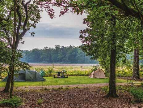 twee krukjes. Het geheel is op en top eco: duurzaam - van geïmpregneerd berkenhout, geheel opgebouwd uit natuurlijk materiaal, dus zonder dat er plastic in is verwerkt. Door de vorm blijft alle warmte binnen. Voor wc, kookgelegenheid en dergelijke kunnen de kampeerders terecht in de gemeenschappelijke ruimtes op het fraaie natuurkampeerterrein vlakbij het Drentse Noordwolde.