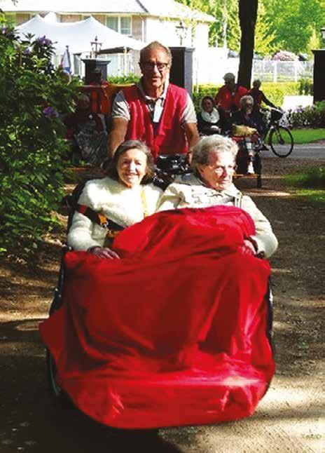 Afgelopen zomer ontving het Koos Vorrinkhuis een niet alledaagse delegatie: acht moderne riksja’s draaide het terrein op, met op elke ‘voorzit’ twee lachende gezichten die zich lekker lieten rijden. Voor het fietsen en besturen zorgden de vrijwilligers van de stichting ’Fietsen alle jaren’ uit Nijmegen, en ook een aantal uit Limburg hadden zich aangesloten bij dit initiatief. Een unieke gebeurtenis want het betrof een 3-daagse tocht vanuit Nijmegen via Bennekom naar Lage Vuursche. Normaal verzorgt de stichting fietsritjes van een uur in of rondom de