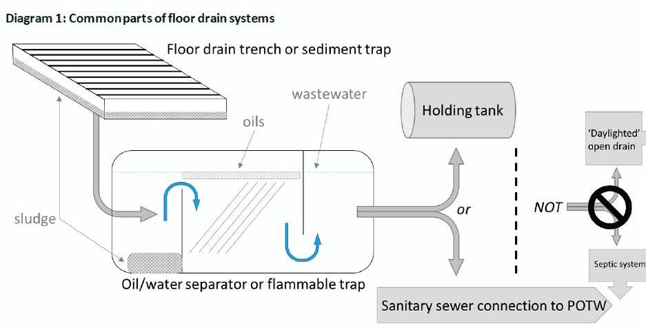 • If you have a septic system, collect all floor drain waste in a holding tank and ensure that no floor drain waste is discharged to the septic system or to the grounds outside the building.
